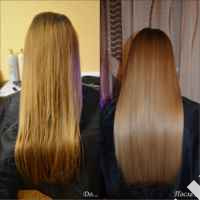 - После выдержки высушить волосы феном на 100%. Начать выпрямление утюжком.