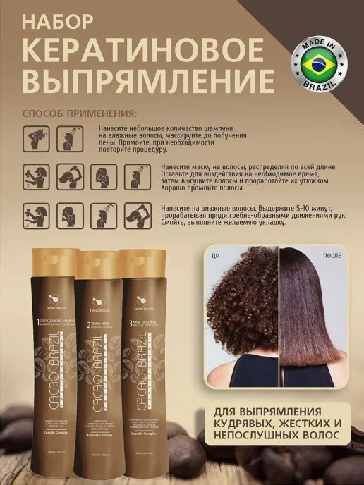 Набор кератина NANO BRAZIL Cacao Brazil 300/300/300 мл для волос